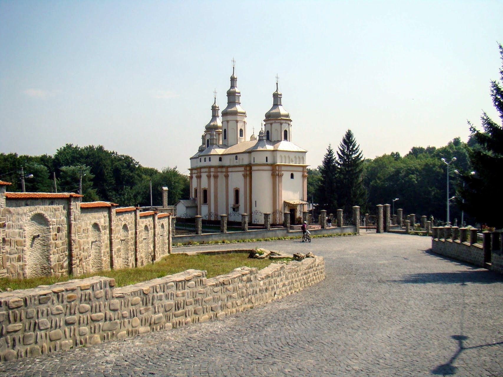 В целях защиты от нападений турок, здание возводили с толстыми стенами и боевой галереей на втором ярусе. При этом линии боковых стен и расстановка куполов храма асимметричны (в числе 7-ми разновысотных куполов есть крупные со световыми окнами и малые декоративные). В интерьере сохранились росписи XVIII в. Одновременно с храмом построена отдельная деревянная колокольня.