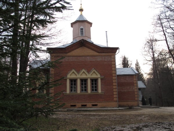 Восьмигранная часовня во имя прп. Тихона Калужского изначально была выстроена в 1838 году над остатками сломанного грозой Святого дуба преподобного Тихона. Она была разрушена в 30-е годы ХХ века.