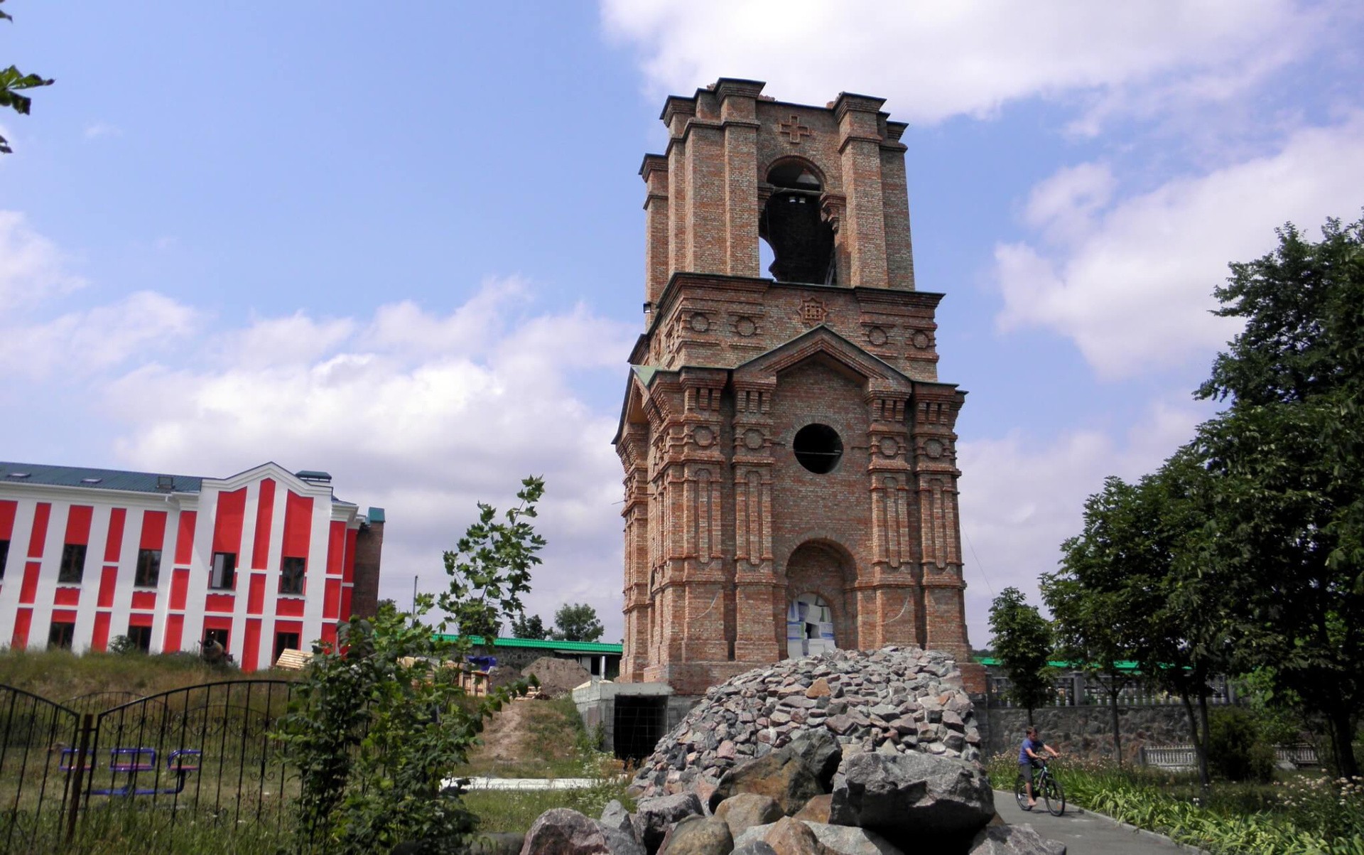 Рядом с колокольней, на ровной площадке был установлен крест в честь освящения места под строительство собора во имя Положения Ризы Пресвятой Богородицы во Влахерне.