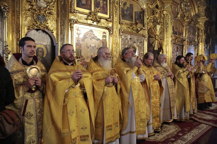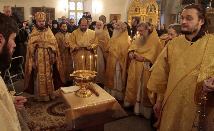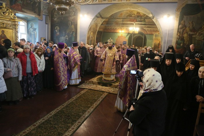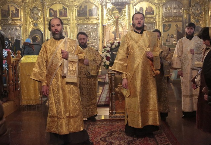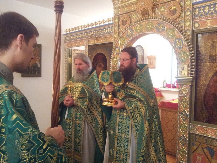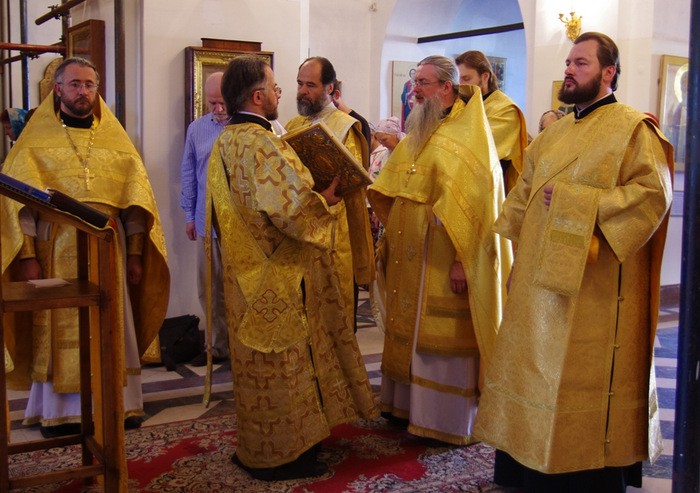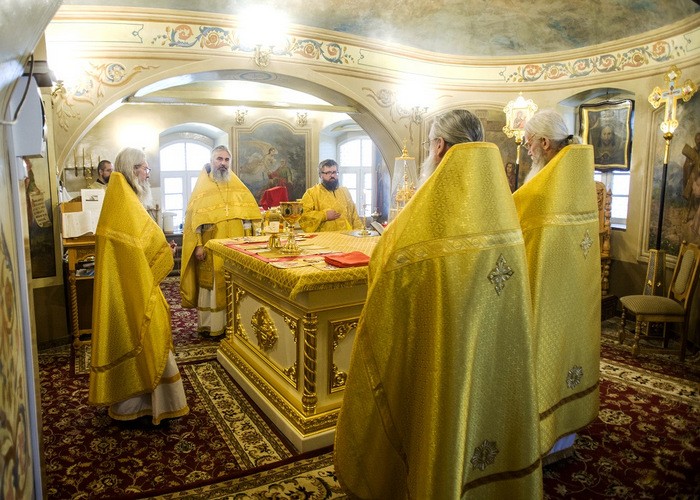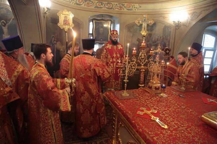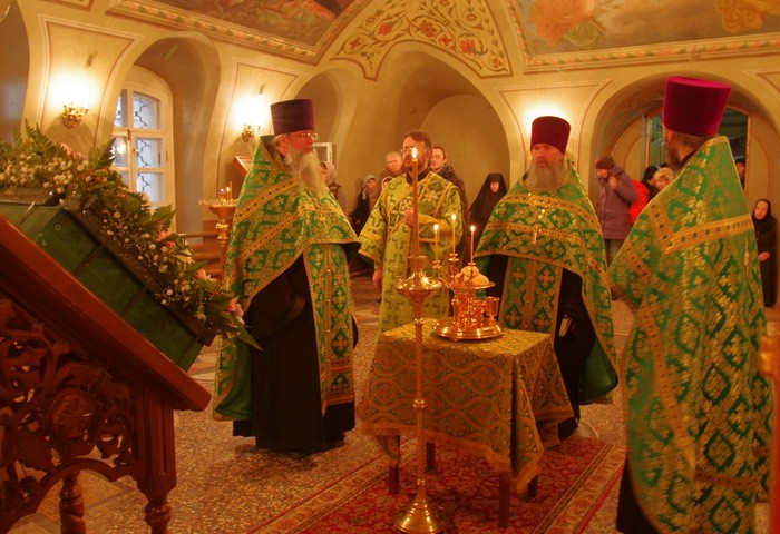 С мая по сентябрь в соборе в честь святителя Николая, с октября по апрель в храме в честь Благовещения Пресвятой Богородицы.