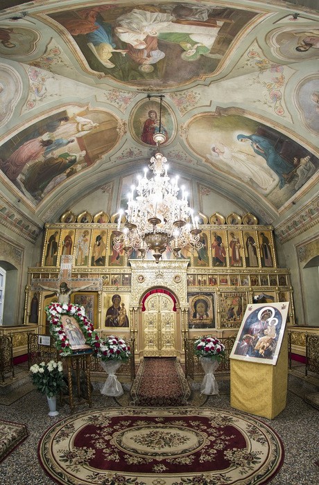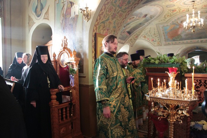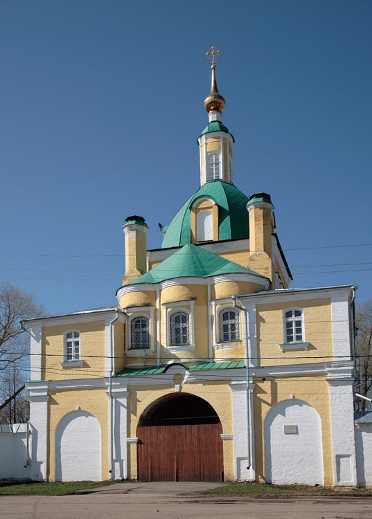 Кирпичная пятиглавая церковь на подклете, примыкала к келейному корпусу и служила трапезным храмом. В 1930-х занята под жилье, венчания сломаны. В 1994 возвращена монастырю,