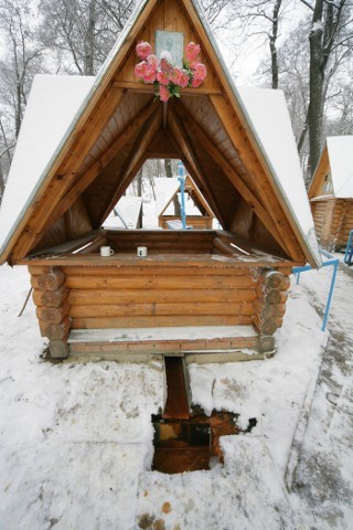 В середине храма-часовни бьет источник святой мученицы Параскевы, и по желобу вода из него направляется к кресту за часовней и в две купальни, что рядом. На этом месте , по преданию, более двух столетий назад была обретена икона Параскевы Пятницы