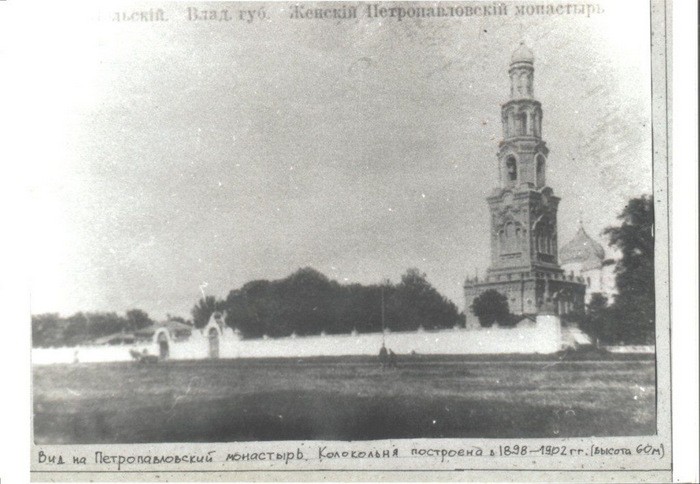 В ведомости о состоянии Петропавловского женского монастыря за 1916 г. отмечается, «что этот монастырь штатный, третьеклассный, основание получил в 1874 г. при бесприходной загородной ружной Петропавловской церкви на пожертвованной купцом Курбатовым земле ( 6 га земельных угодий и 2 га фруктовый сад), по Указу Святейшего Синода от 26 января 1874 г.