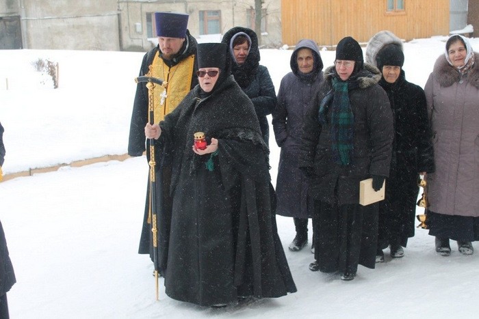 20 июля 1874 г. «устроявшаяся обитель торжественно была освящена Высокопреосвященнейшим Антонием». Владыка приехал в Юрьев 18 июля, 19-го обозревал градские церкви и Петропавловскую. Он сам «изволил усмотреть – где лучше и удобнее идти и где останавливаться крестному ходу вокруг устроявшагося монастыря». Сестры Введенского монастыря с примерной энергией и поспешностью приступили к устройству обители на новом месте. Через два года обитель была обнесена каменной оградой, была распространена теплая церковь, построено десять новых келий.