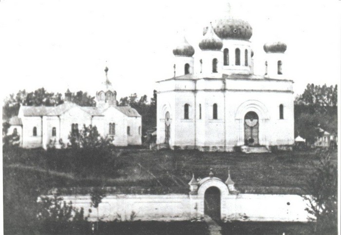 В клировой ведомости Юрьевского городского благочиния за 1874 г. упоминается Петропавловская холодная церковь, построенная в 1853 г. тщанием граждан города Юрьева и других вкладчиков, зданием каменная, пятиглавая, колокольни нет, колокола висят под главою в куполе с северной стороны. Престолов в церкви три: в середине — в честь апостолов Петра и Павла; с южной стороны — в честь Николая Мирликийского; с северной — в честь мученицы царицы Александры. Причт состоит из священника и дьячка. Дом у священника собственный деревянный на собственной земле, расстоянием от монастыря в одной версте, а дьячок живет на квартире. Приписных и домовых церквей нет. Училища при церкви нет.