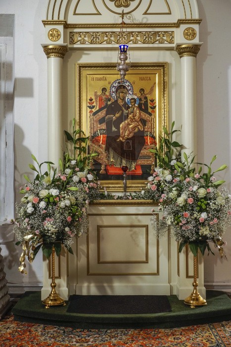 В храме хранится икона Божией Матери, список (копия), исполненный монахами Ватопедского монастыря Святой Горы Афон с находящейся там всемирно известной чудотворной иконы Божией Матери «Всецарица». Список был торжественно доставлен в марте 2016 г. на подворье, в храм Всемилостивого Спаса. Образ Божией Матери «Всецарица» почитается верующими как чудотворный и известен многочисленными исцелениями от онкологических заболеваний.