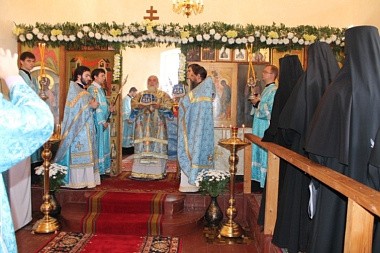 По окончании Литургии вокруг возрождающегося храма подворья был совершен торжественный крестный ход, после которого Высокопреосвященный Владыка Арсений обратился к Игумении Викторине, сестрам и прихожанам монастыря с архипастырским словом, передав всем присутствующим благословение Его Святейшества Святейшего Патриарха КИРИЛЛА и поздравив всех с праздником. Высокопреосвященный Владыка Арсений поблагодарил представителей администрации за доброе отношение к Игумении, насельницам и духовенству монастыря, которые стараются здесь, на лоне природы, создать своего рода оазис – место молитвы и духовного просвещения, и одновременно возродить памятник старины.