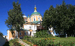 После северных Святых ворот Покровский собор – второе старейшее из сохранившихся сооружение Хотькова монастыря, характерный образец пятиглавого храма эпохи классицизма. Благодаря простой и гармоничной архитектуре он стал главным украшением обители.