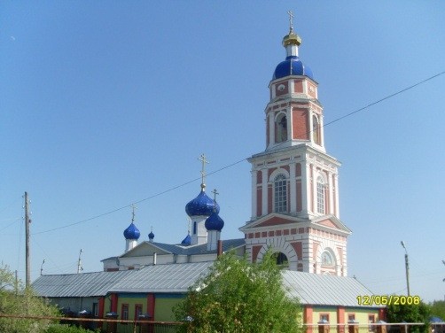 В 1743 году построили первую деревянную церковь, которая сгорела в 1750 году. Вторая деревянная церковь в честь Покрова Пресвятой Богородицы с Иоанно-Предтеченским и Никольским приделами была построена в 1843 году. Возведение третьей церкви, каменной, было начато в 1908 году, но полностью не было завершено из-за начавшейся Первой мировой войны. Не построена алтарная часть храма, но храм всё-таки был задействован примерно перед революцией 1917 года.