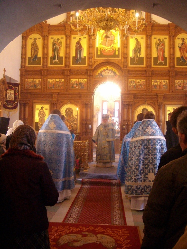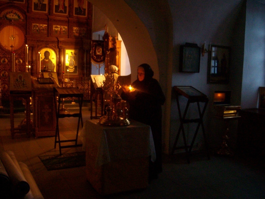 Одновременно подготовили Троицкий придел к богослужению: восстановили иконостас и заполнили его пока еще бумажными иконами, поставили песочные подсвечники, устроили аналой, приобрели богослужебные книги. В Вербное воскресенье в монастыре была совершена первая Божественная литургия.