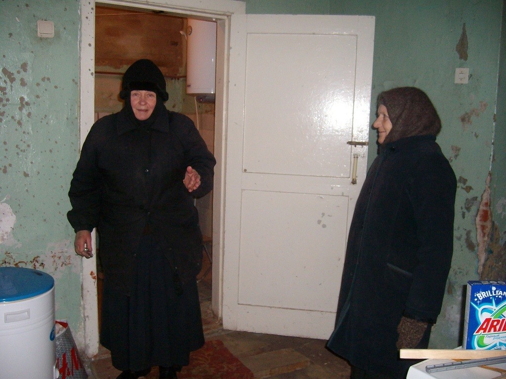 Поселились в одной неотапливаемой келлии. Божия Матерь послала сестрам первых помощников: увидев их усердные труды, местные жители потянулись к обители со своими дарами: кто нес картошку, кто хлеб, а кто и свою теплую одежду.