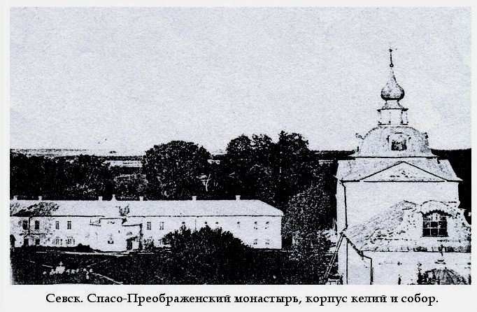 Спасо-Преображенский монастырь в г. Севске был основан в 1631 году. В 1713–1717 гг. сооружен каменный собор Спаса Преображения с приделом Илии Пророка. С образованием в 1764 году Севской епархии Спасский монастырь являлся резиденцией севских архиепископов. В обители размещалась духовная семинария. Когда же епископская кафедра переместилась из Севска в губернский город Орел, монастырь стал приходить в упадок. Но его выкупил Севский Троицкий девичий монастырь и сделал своим подворьем.