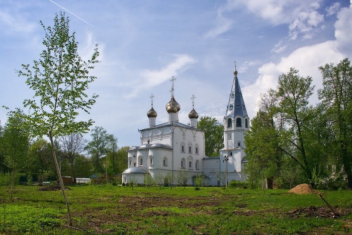 В 1643 году построены были деревянная церковь во имя Благовещения Пресвятой Богородицы с приделами преподобных Михаила Малеина и Алексия человека Божия в деревянные же настоятельские и братские кельи. Земля, на которой построен монастырь, в древности принадлежала «Ярополчью убогому дому».