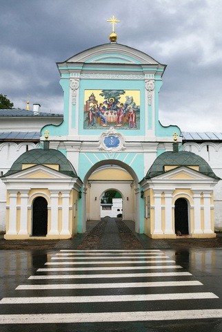Церковь святых мучеников Хрисанфа и Дарии со Святыми воротами возведены в 1841-1863 гг. по проекту К.А. Тона и Н.П. Григорьева на месте древнего входа в монастырь – Святых ворот с надвратной церковью во имя святых Феодора Стратилата и Ирины, соименных царя Федора Иоанновича и царицы Ирины.