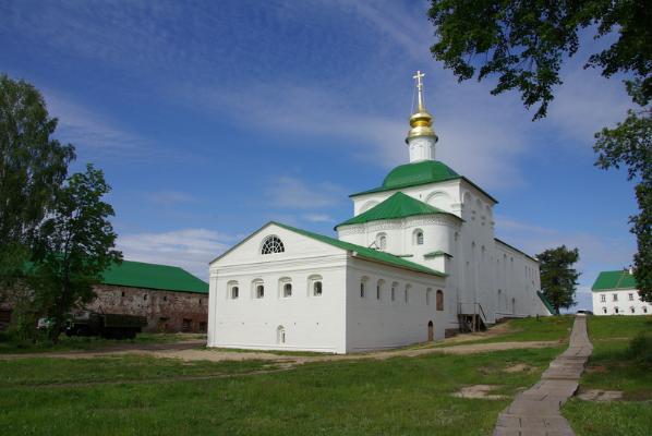 В 1684 году был отстроен теплый трапезный храм Святой Троицы, в 1692 году - надвратная церковь во имя преп. Ефрема Сирина (впоследствии, после пожара 1770 г. освящена во имя апп. Петра и Павла). Последняя каменная церковь святых Зосимы и Савватия - Соловецких чудотворцев - была освящена в 1703 году (в 1770 г. устроен и освящен предел во имя преп. Ефрема Сирина).