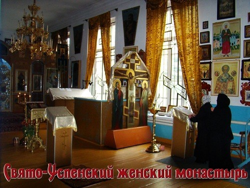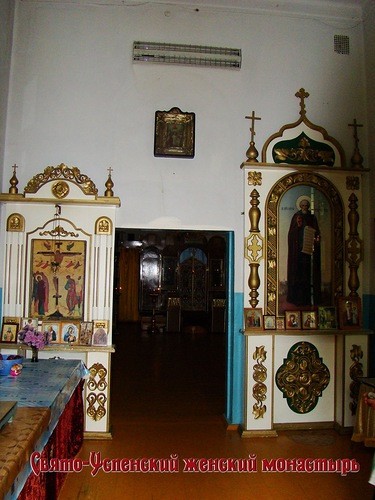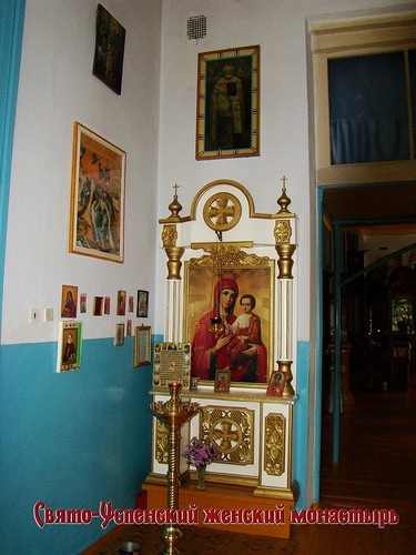 Старинный особняк, подаренный обители, стал храмом монастыря. На первом этаже здания расположен главный монастырский храм Успения Пресвятой Богородицы, освященный владыкой Исидором 4 ноября 1993 года. В память о храме, который находился в этом здании до 1917 года, устроен левый придел в честь святителя Николая. Рядом - во имя иконы Божией Матери «Всех скорбящих Радость». Все храмы – домовые.