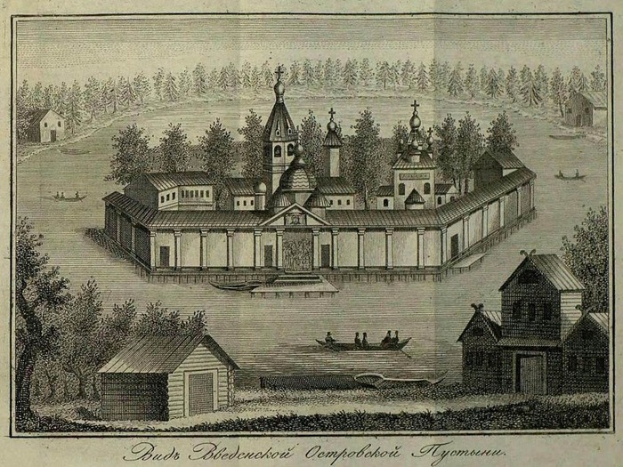 На протяжении первой половины XVIII в. Введенский монастырь постоянно испытывал трудности с уплатой налогов и даже терял самостоятельность. Духовный расцвет монастыря связан с приходом в него с далекого Афона известного своей подвижнической деятельностью старца Клеопы в 1760 г., который самой братией был избран настоятелем Введенской Островской пустыни. Преподобный Клеопа славился своей прозорливостью (например, он предсказал точную дату своей смерти) и даром исцеления. Старец был известен даже в Москве как истинный монах и христианин, и пустынь существовала в то время преимущественно за счет вкладов богатых и именитых москвичей. Именно при Клеопе в монастыре были выстроены каменные храмы – Введенский и Никольский. Кроме того, старец Клеопа распорядился построить на берегу озера просторный дом с мезонином и двор с конюшнями и сараем для приезжающих богомольцев, которые на лодке переправлялись монахами на остров.
