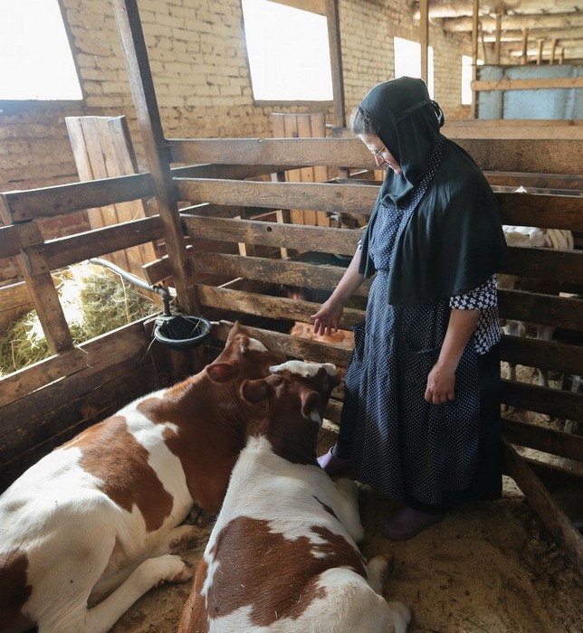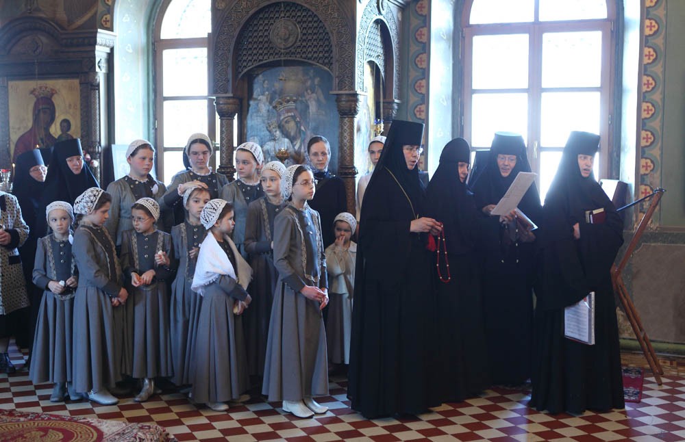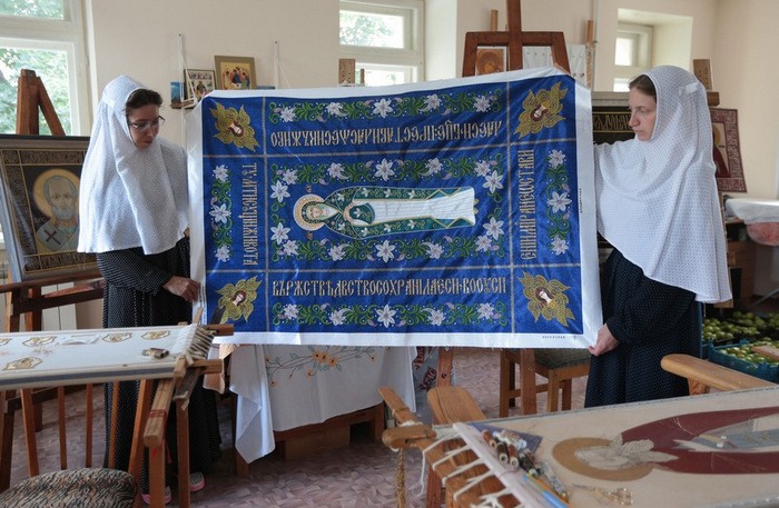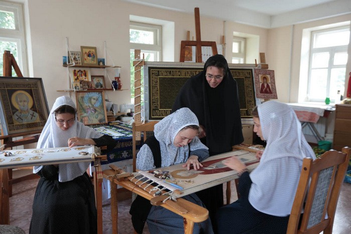 Монахини обучают воспитанниц вышивке. Дети участвуют в богослужениях,