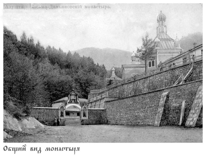 В начале мая 1899 г. владыка Николай приехал в Алушту. В его планы входило посещение Космодамиановской обители. Газета «Салгир» достаточно подробно сообщала об этой поездке: «Встреченный в монастыре всей братией, преосвященный расположился в покоях настоятеля, а на другой день уже в 5 час. утра прогуливался по монастырю и осматривал царский домик, где и расписался в книге посетителей. Позже владыка служил обедню вместе с братией. После служения последовало шествие преосвященного со всею братиею в трапезную «со славой». Во время трапезы владыкой было сделано несколько указаний и поправок неточного выполнения устава… Место расположения монастыря преосвященному понравилось. Он полагает, что климат здесь одинаков с Абас-Туманским и что здесь прекрасное место для санатории. Между прочим, владыкой была высказана мысль, что на место мужского Космодамиановского монастыря наиболее подходяще перевести женский монастырь».
