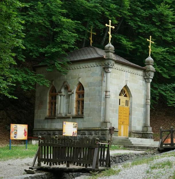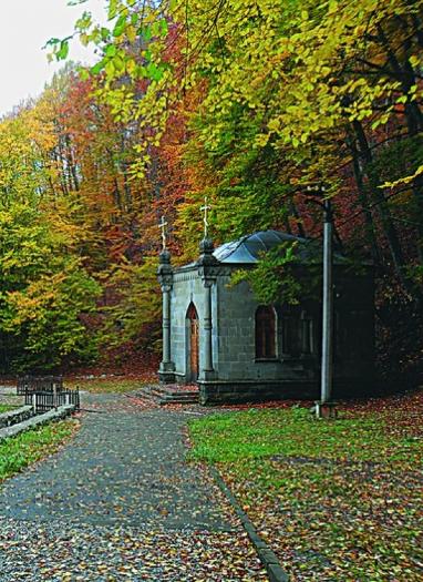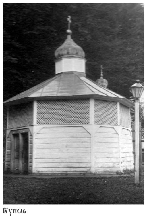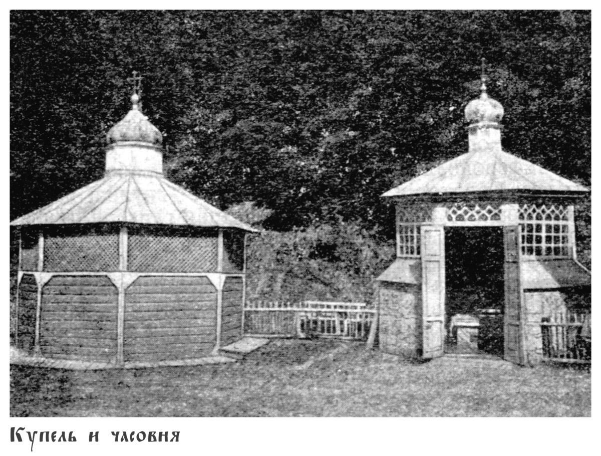 Строительство монастыря продолжалось. В 1891 г. над источником вместо первой деревянной часовни была построена каменная, красивая и удобная для богослужения. В центре часовни, возвышаясь над полом, располагался небольшой каменный резервуар, в который был заключен источник. Наполняя резервуар, вода с шумом стекала в большой деревянный бассейн, находившийся в закрытом помещении и служивший купальней для богомольцев. Купальня разделялась на две половины — мужскую и женскую. Несмотря на низкую температуру воды (+8° С), многие богомольцы купались в бассейне, прочие же ограничивались частичным омовением. Вода в бассейне не была стоячей, так как он был постоянно полон, и лишняя вода стекала. Имелось и специальное приспособление, при помощи которого можно было полностью менять всю воду в бассейне всего за 25 минут. В часовне, из самого источника, брали воду для питья.