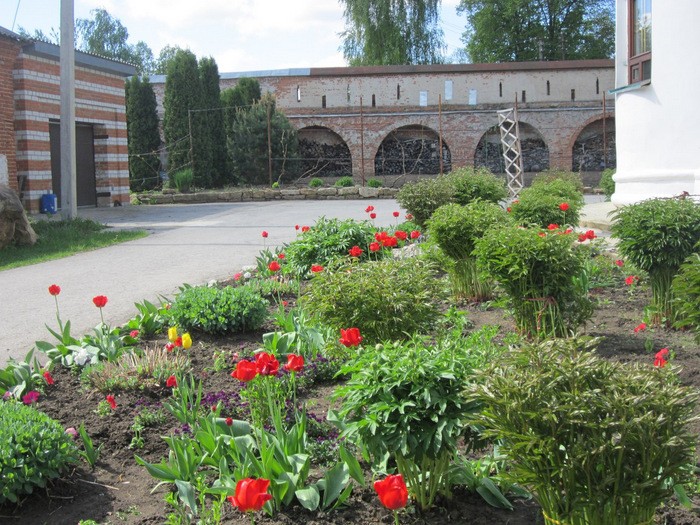 Все монастырские строения были огорожены массивной стеной-оградой из кирпича, выстроенной на случай военных действий. В нижнем поясе стены были проделаны небольшие амбразуры для огнестрельного оружия, а по верхнему гребню стены были сделаны бойницы и стрельницы. Монастырская ограда и в наше время выглядит как мощная крепостная стена, готовая в любой момент отразить нападение врага.
