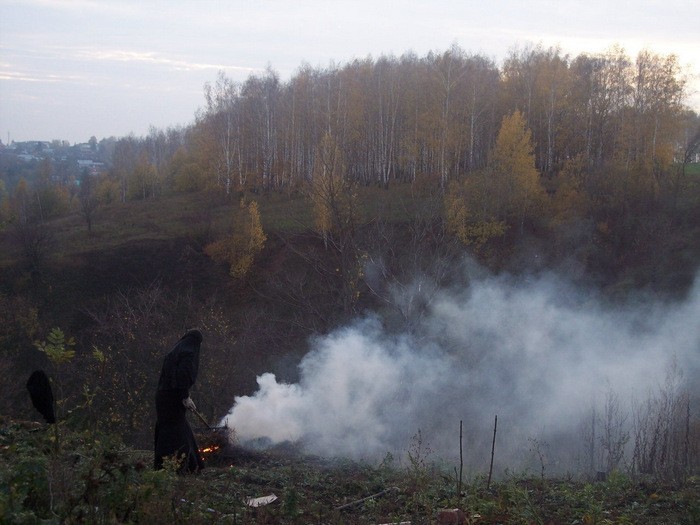 Второе монастырское предание о том, как видели монахи Саму Богородицу, как прошла Она у монастырской ограды, благословляя Свою обитель.