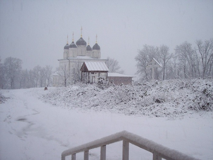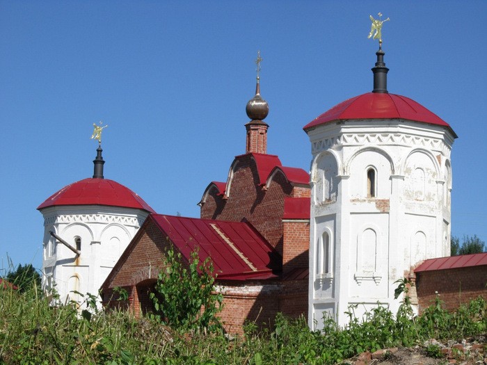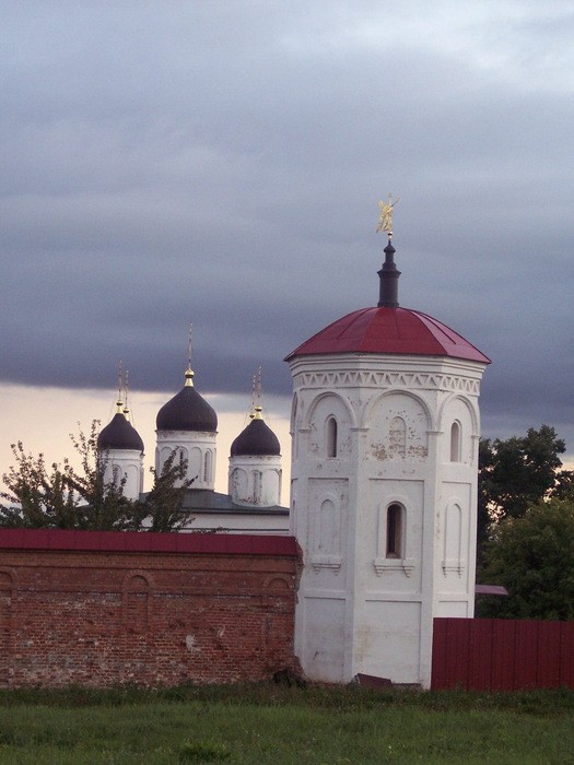 Окружала обитель крепостная каменная стена с четырьмя башнями - бойницами по углам, что указывает на приспособление к самозащите.