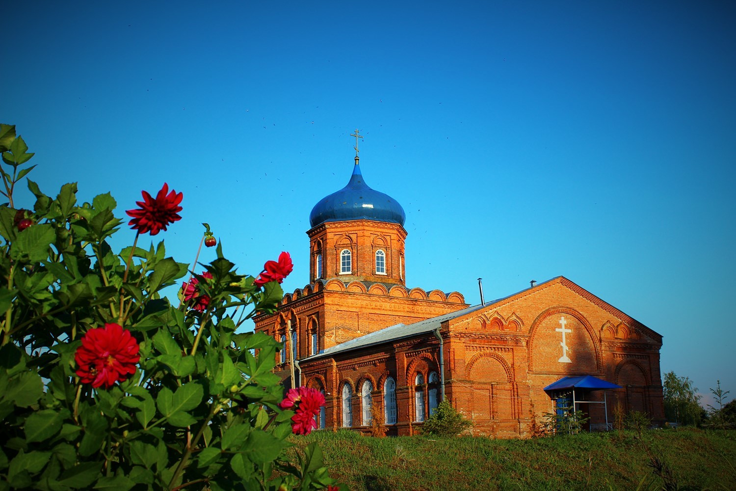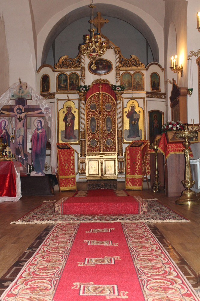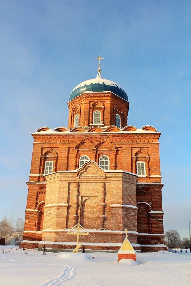 Храм трехпрестольный: центральный освящен в честь Успения Божией Матери, северный – Рождества Пресвятой Богородицы и южный – святителя Николая Чудотворца.