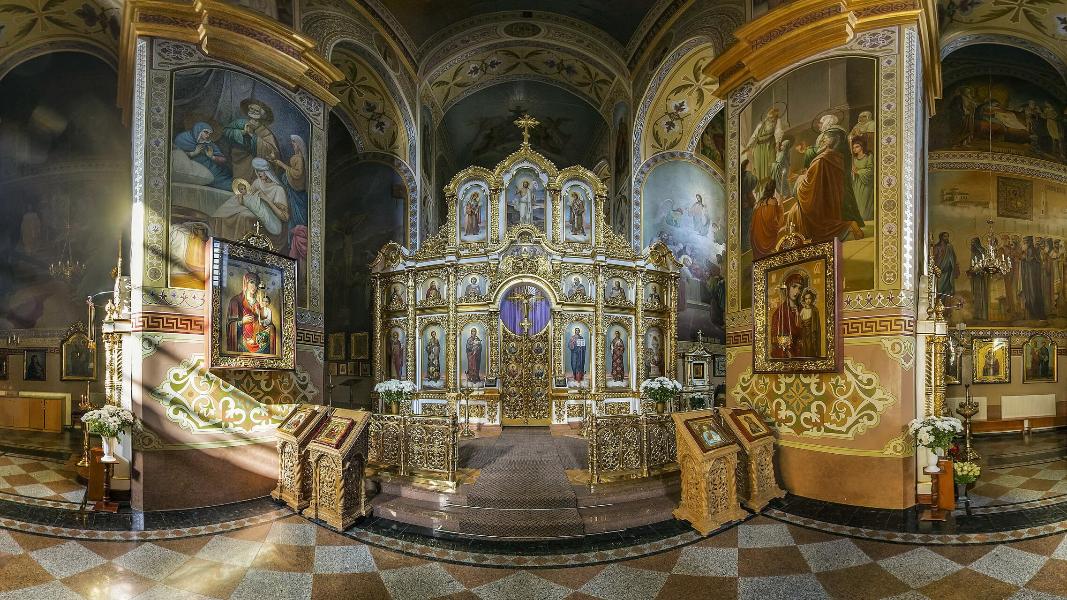 На четырех колоннах в центральной части храма размещены образы Пресвятой Богородицы, что поражают своим величием и изящной живописью – это иконы Божьей Матери Почаевская, Казанская, Иверская и Скоропослушница.