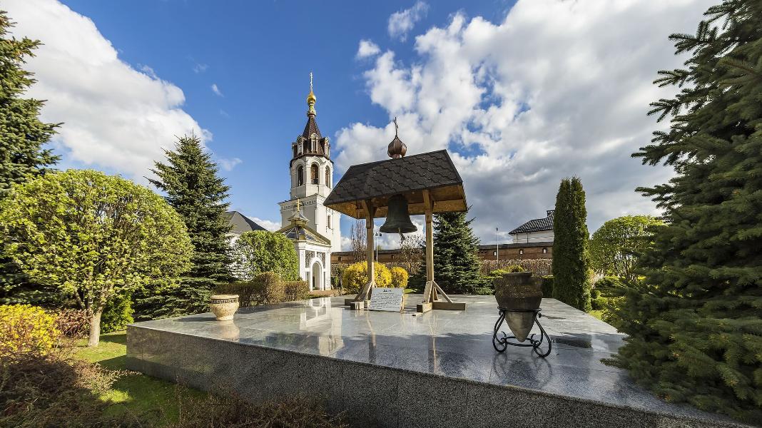 Колокольня над главными воротами обители была устроена в 1890-х гг. в результате реконструкции крепостной башни с воротами в центре южной монастырской стены. Над древней квадратной в плане башней был надстроен четвертый восьмигранный ярус, завершенный маковкой по примеру российских колоколен XVII ст.