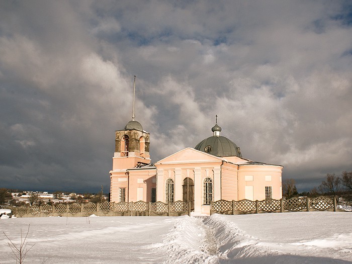 В 1804 году на средства помещика села Долбенкино князя Лобанова-Ростовского (представитель одного из древних российских родов) начато строительство небольшой каменной церкви, которое было окончено в мае 1805 года. В тоже время церковь была освящена во имя обновления храма Воскресения Христова. Церковь эта была небольшая, маловместительная и холодная.