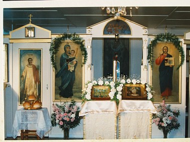Художник В. П. Загороднюк вместе со своим зятем В. С. Салтыковым и женой Зинаидой Павловной помог устроить иконостас, написал распятие и выполнил некоторые другие работы по украшению монастырского храма. При въезде в монастырь по проекту В. П. Загороднюка были поставлены высокие деревянные ворота в русском стиле. Строил их престарелый мастер М. В. Артёмов с помощниками. Несколько позже он же построил и звонницу.
