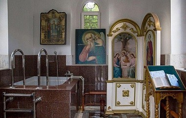 В часовне имеется большая икона апостола Иоанна Богослова. В небольшом деревянном иконостасе – иконы Святой Троицы и великомученика Георгия Победоносца. В часовне обустроена купель для совершения Таинства Крещения с полным погружением для взрослых.