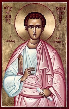 Святой апостол Филипп, уроженец города Вифсаиды (Галилея), был глубоким знатоком Священного Писания и, правильно разумея смысл ветхозаветных пророчеств, ожидал прихода Мессии. По призыву Спасителя (Ин. 1, 43) он пошел за Ним. Об апостоле Филиппе несколько раз говорится в Святом Евангелии: он привел ко Христу апостола Нафанаила (Ин. 1, 46); его Господь спросил, сколько нужно денег для покупки хлеба 5-ти тысячам человек (Ин. 6, 7); он привел эллинов, желавших увидеть Христа (Ин. 12, 21 - 22); наконец, он во время Тайной Вечери спрашивал Христа о Боге Отце (Ин. 14, 8).