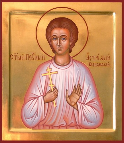 Святой Артемий Веркольский родился в 1532 г. в селе Верколе Двинского края, в благочестивой крестьянской семье. Воспитанный в страхе Божием и христианском благочестии, Артемий еще и в детстве отличался кротостью, послушанием и трудолюбием. В возрасте 12 лет, работая в поле, он был убит молнией. Суеверные односельчане оставили тело блаженного Артемия, как умершего от внезапной смерти, неотпетым и положили его лесу, поверх земли, прикрыв хворостом и берестой.
