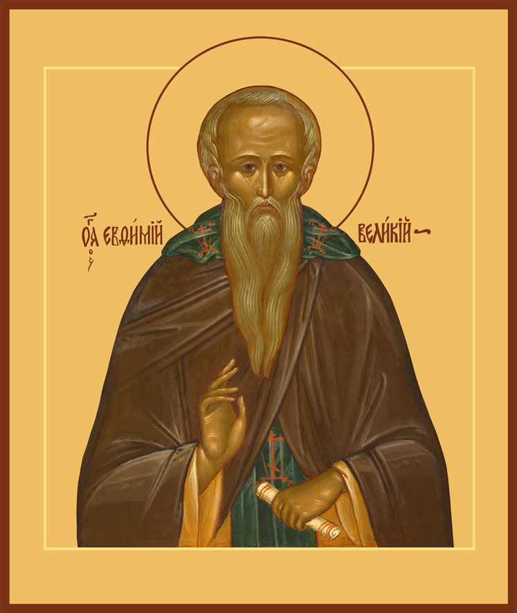 За свою подвижническую жизнь и твердое исповедание православной веры святой Евфимий получил наименование Великого. Тяготясь общением с миром, святой авва удалился на время во внутреннюю пустыню. После его возвращения в Лавру некоторые из братии видели, что, когда он совершал Божественную литургию, огонь сходил с небес и окружал святого. Сам же преподобный открыл нескольким инокам, что часто видел Ангела, совершающего вместе с ним святую литургию. Преподобный имел дар прозорливости, видел внутренние движения духа и узнавал человеческие помышления. Когда иноки причащались Святых Тайн, преподобному было открыто – кто приступает достойно, а кто во осуждение себе.