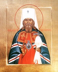 Воинство Царя Небеснаго / паче земнаго возлюбив, / служитель пламенный Святыя Троицы явился еси, / наставления Кронштадтскаго пастыря в сердце своем слагая, / данная ти от Бога многообразная дарования / к пользе народа Божия приумножил еси, / учитель благочестия / и поборник единства церковнаго быв, / пострадати даже до крове сподобился еси, / священномучениче Серафиме, / моли Христа Бога // спастися душам нашим.