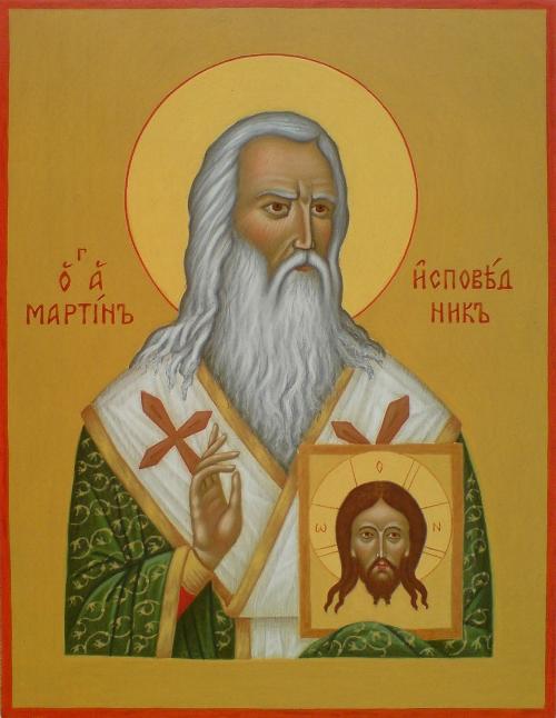 Святитель Мартин Исповедник, папа Римский, был уроженцем Тосканской области в Италии. Он получил хорошее образование и поступил в клир Римской Церкви. После смерти папы Феодора I (642–649) пресвитер Мартин был избран на престол.