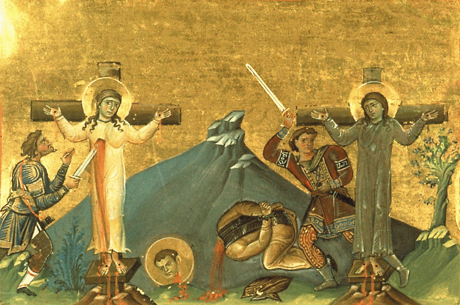 Однажды, когда мимо проезжал языческий правитель того края, сестры выглянули в окно и громко объявили, что они христианки. Правитель вынужден был арестовать дев, сожалея об их цветущей юности. Они отвечали, что смерть за Христа – не конец, но путь к вечной жизни. По приказу властей трех мучеников распяли и обезглавили.