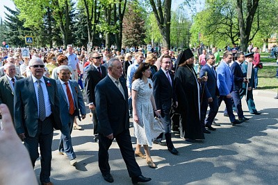 В шествии по городу от площади до братской могилы принимают участие все жители города. По окончание шествия служится панихида.