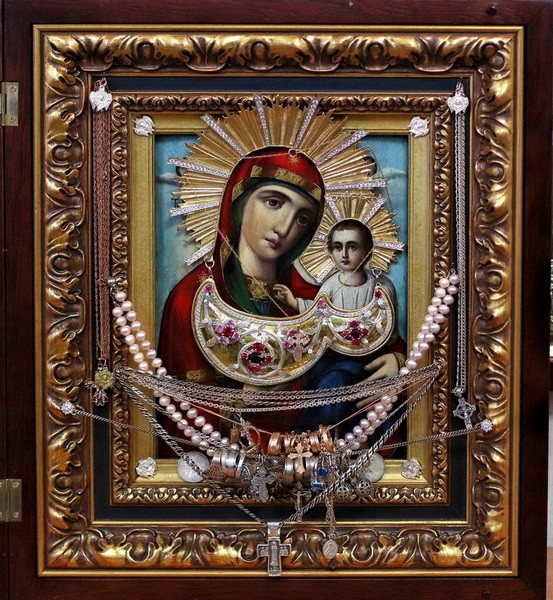 Благочестно отвсюду, о Богомати, к пречестней Твоей иконе притекающия, и усердно покланяющияся, и верно везде Тя призывающия предвари, от бед всяких спасающи, и лютых недуг избавляющи, и духи лукавыя прогоняющи, тишину и здравие подающи всем, Владычице.