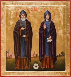 Икона благоверных князя Петра и княгини Февронии Муромских с частицей мощей.