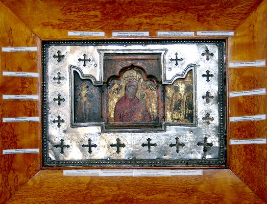 Икона Божией Матери «Афонская» 15 века с частицами мощей угодников Божиих