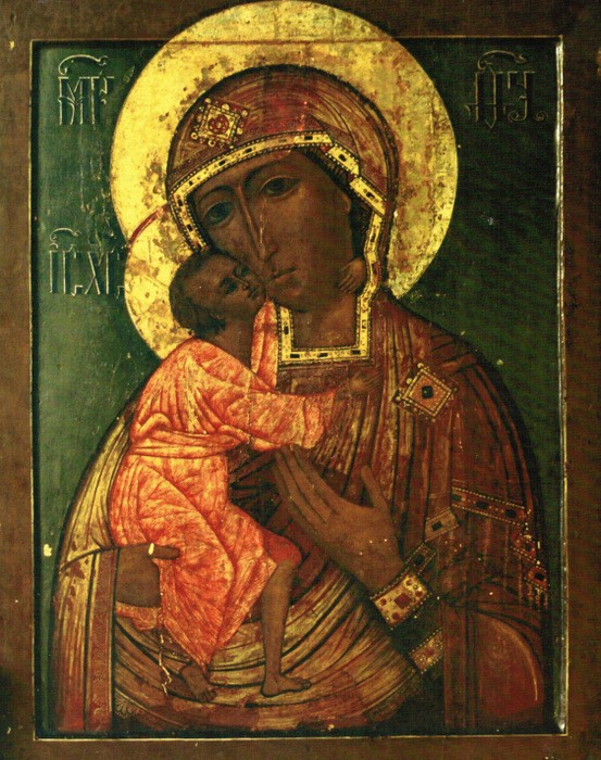 Феодоровская — Костромская икона Божией Матери написана евангелистом Лукой и близка по иконографии к Владимирской иконе Божией Матери.
