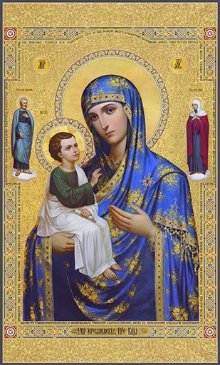 Взирая на образ Твой и чуя близость Твою к чадам Твоим, вси искупленнии кровию Сына Твоего спешно текут к Тебе, поведая кийждо нужды своя и потребы. Овии убо молят Тя утолити скорби их душевныя и телесныя, инии же в начало путей своих благословение и благопоспешество в делех своих прияти от Тебе чают, друзии мира семейного, согласия и любви даровати им просят. Угнетаемии же от злых человеков защиты и покрова у Тебе ищут, и вся сия приемлюще, радостно вопиют: Аллилуиа.
