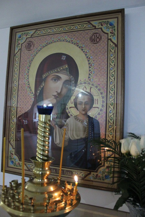 Бла­го­дат­ным осе­не­ни­ем рас­по­ло­жи­лись ико­ны Пре­чи­стой Бо­го­ро­ди­цы по ли­цу на­шей От­чиз­ны, во­ис­ти­ну об­ра­зуя Небес­ный по­кров. Ее неустан­ным хо­да­тай­ством нис­по­слан­ный Бо­же­ствен­ным Сы­ном, при­нес­шим Се­бя в жерт­ву для спа­се­ния че­ло­ве­че­ства. Древ­ний Вла­ди­мир­ский свя­той об­раз Бо­го­ро­ди­цы хра­нит и бла­го­слов­ля­ет на­ши се­вер­ные пре­де­лы, Смо­лен­ская и По­ча­ев­ская ико­ны ограж­да­ют за­пад, а на во­сток, до края зем­ли си­я­ет лу­ча­ми неиз­быв­ной бла­го­да­ти чу­до­твор­ный Ка­зан­ский об­раз Пре­чи­стой на­шей Ма­те­ри.