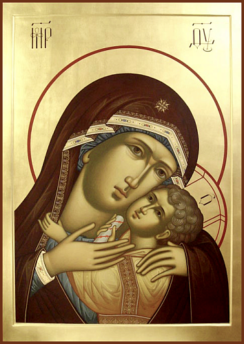 Еще в земнем житии Своем, смирением великим богатея, преисполнена бысть труда и забот обрученная старцу Дева-Мати, о доме и о Сыне Своем возлюбленнем попечение всегда имея. И по днесь, егда крестною смертию увенча мир деяния Искупителя не забывает Богомати, уже в славе небесней пребывая, грешного мира людей сирых и обремененных, не преставая о них перед Сыном моления творити да вопиют спасаемые Богу: Аллилуия.