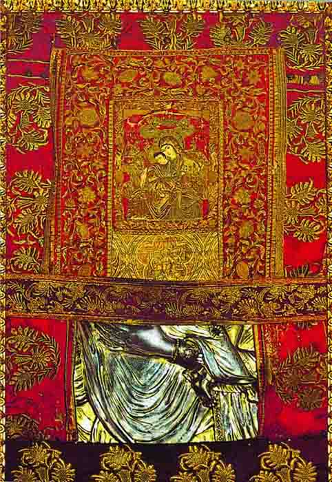 Видяще Тя на облацех, честный покров Твой простирающую, и тем нас соблюдающую, благодарственно вопием Богу: Аллилуиа.