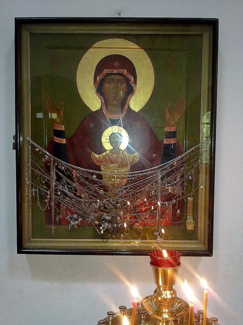 Ангел вопияше Тебе, Дево Чистая: радуйся! Мы же что Ти принесем, благаго Царя благая Мати, яко явила еси нам в сия последняя времена сокровище неоскудное – чудотворную икону Твою на освящение и исцеление душ и телес наших.