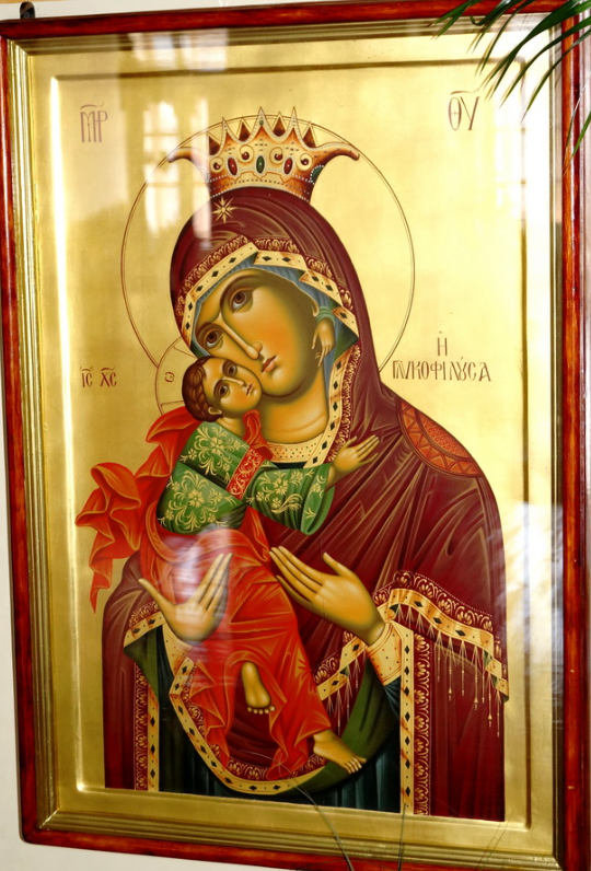 В скиту русского афонского Пантелеймоновского монастыря есть снимок с чудотворной иконы «Гликофилуса».